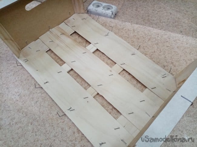 Добывая из ящиков "фруктовую" Фанеру, обратил внимание на небольшие брусочки усиления придерживающие переднюю стенку.