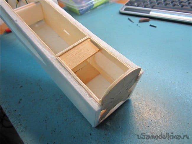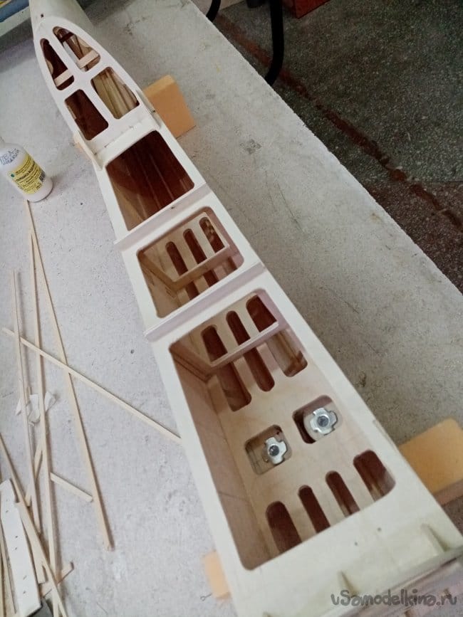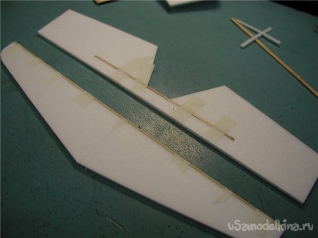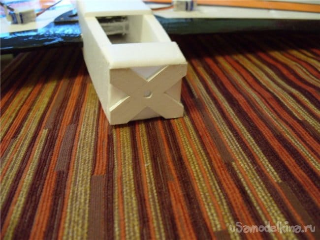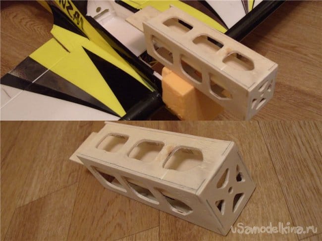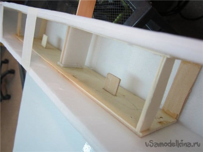 Можно сделать площадку для установки стоек шасси, и мотораму пенопластовой пилотажки. Все заклеивается на титан или пва.