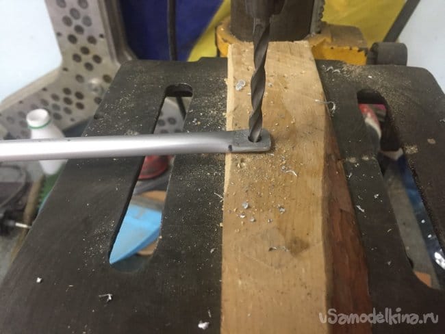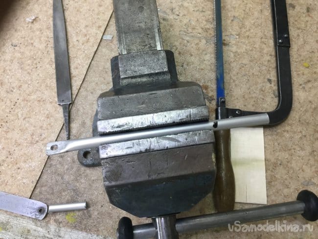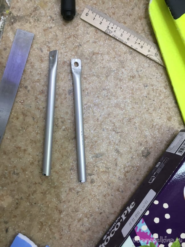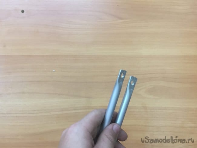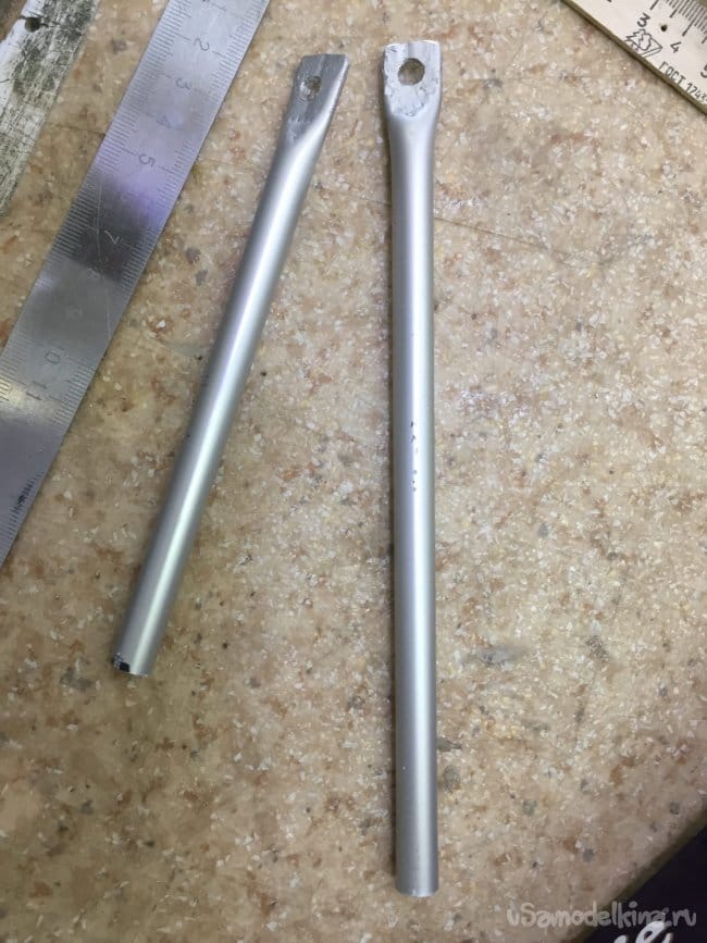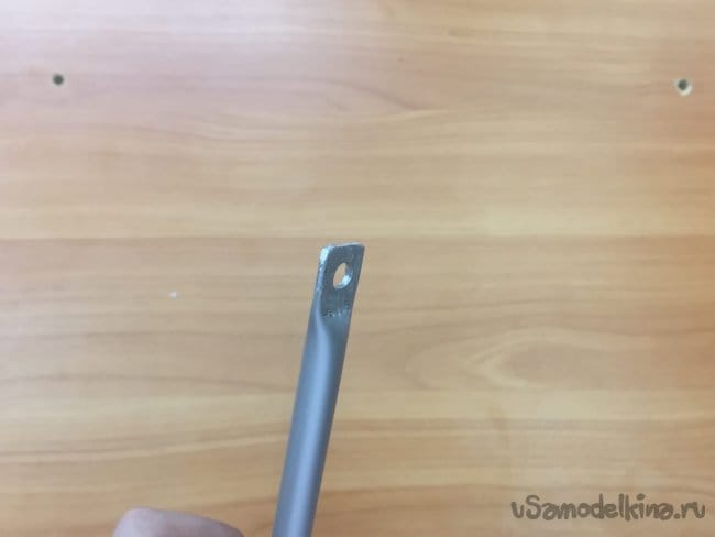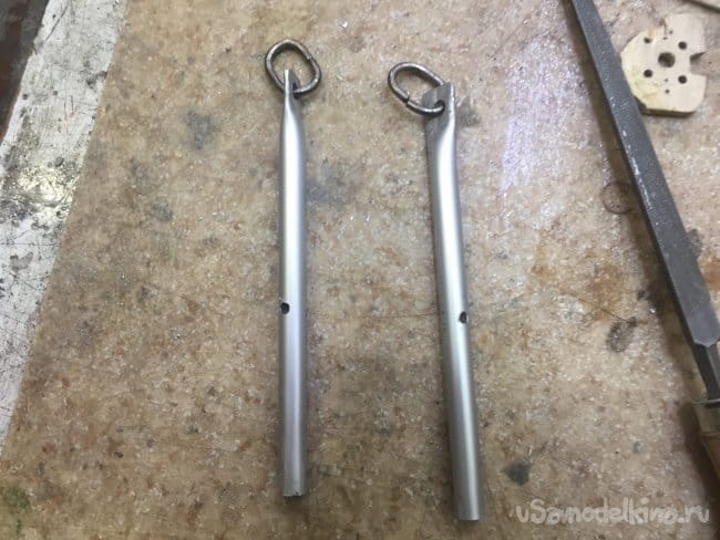 Один конец трубки на каждой стойке я сплющил и просверлил отверстие для кольца.