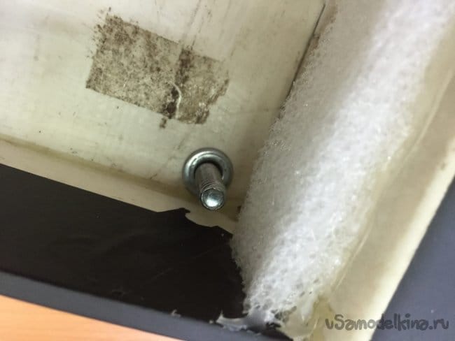 Но, как только я присоединил карабины к стойкам, я сразу понял, что они длинные, так как столик перевешивал. Пришлось всё разбирать и отпиливать лишнее.