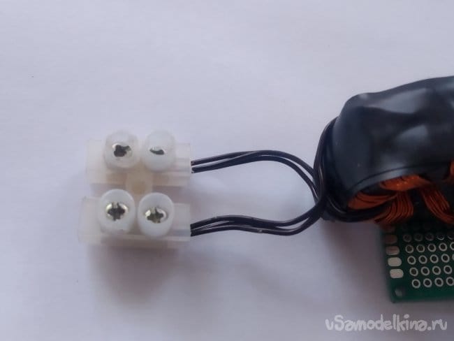 Теперь его следует прикрепить к вторичной обмотке трансформатора при помощи винтовых зажимов.