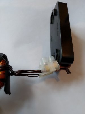 Затем следует изготовить дроссель. За его основу взято металлопорошковое кольцо из компьютерного блока питания. Обмотка состоит из 12 витков двумя проводами диаметром по 0,5 мм.