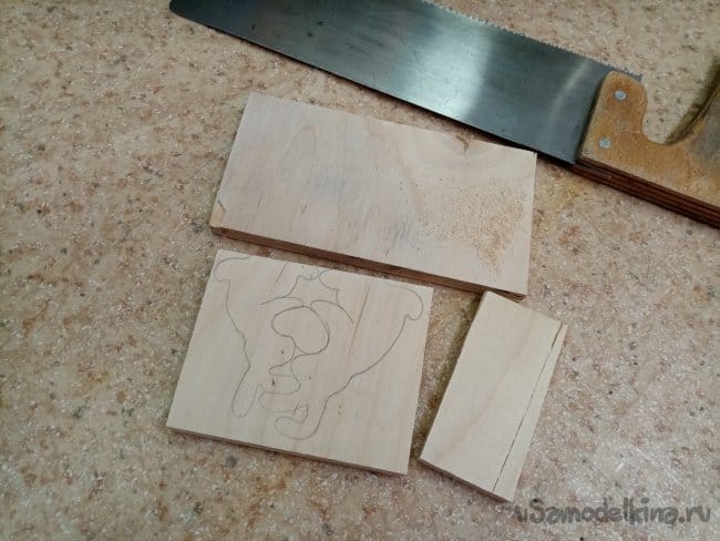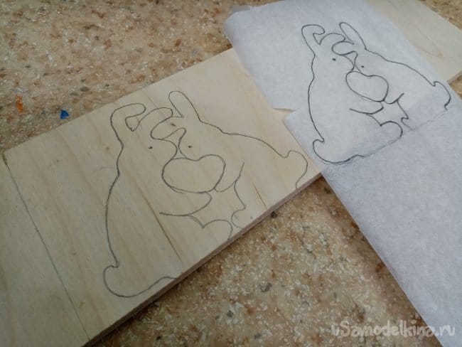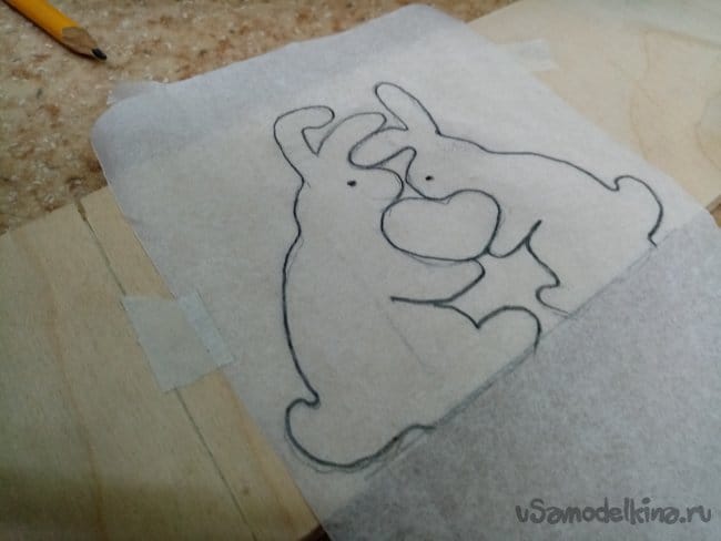 Немного шкуркой и перевожу рисунок с кальки на дерево. Отрезаю лишнее.