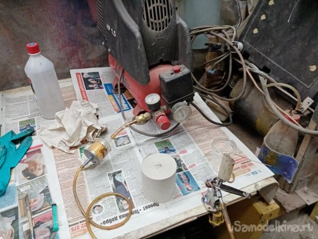 Для автомобильных вариантов краски использую витебский прямоточный аэрограф. При давлении в 2 атмосферы.