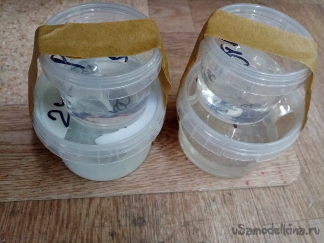 Лак разводится в пропорции в два к одному, использую для этой цели небольшие шприцы.