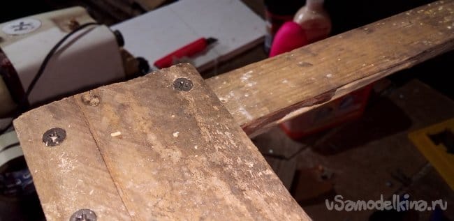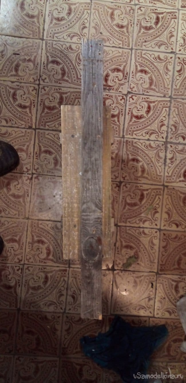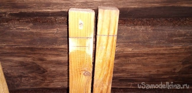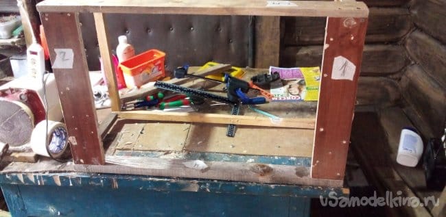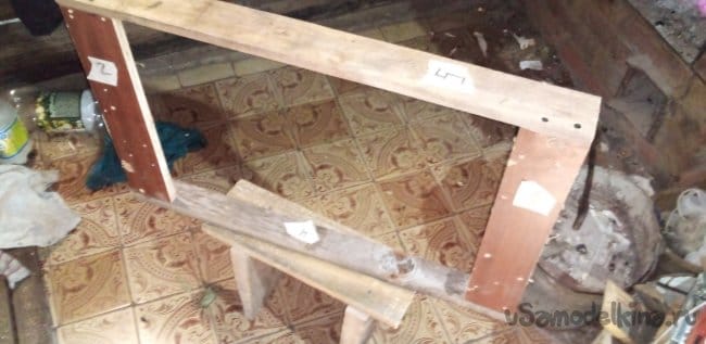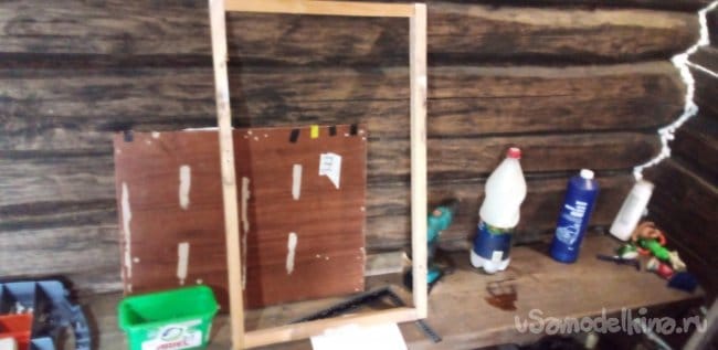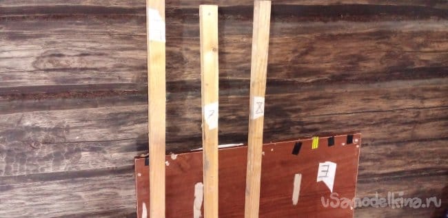 Берём две доски-рейки длинной с ширину рабочие зоны плюс две стойки, и две рейки длинной в высоту рабочей зоны в сложенном виде плюс пол сантиметра. Скручиваем из этого рамкообразную канструкцию.