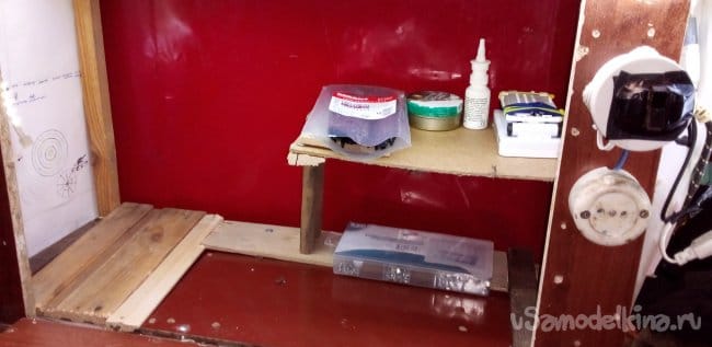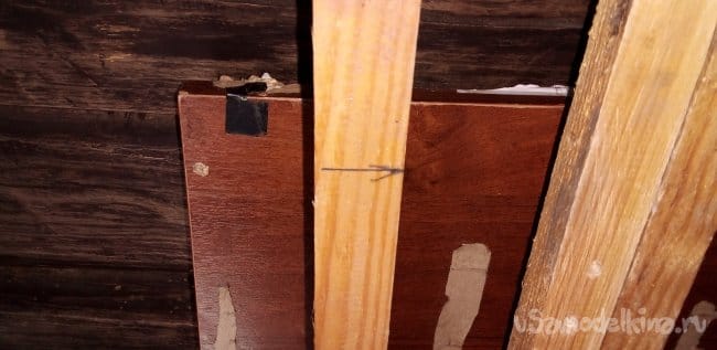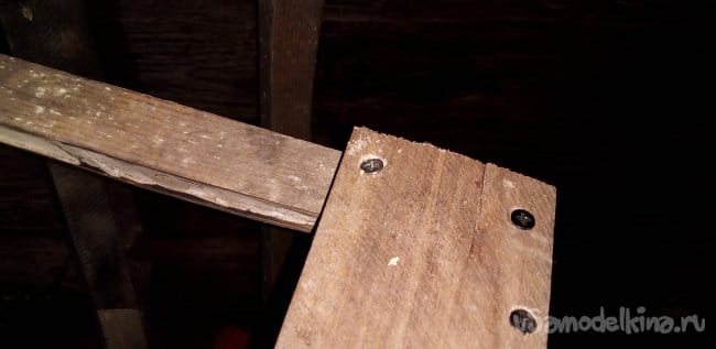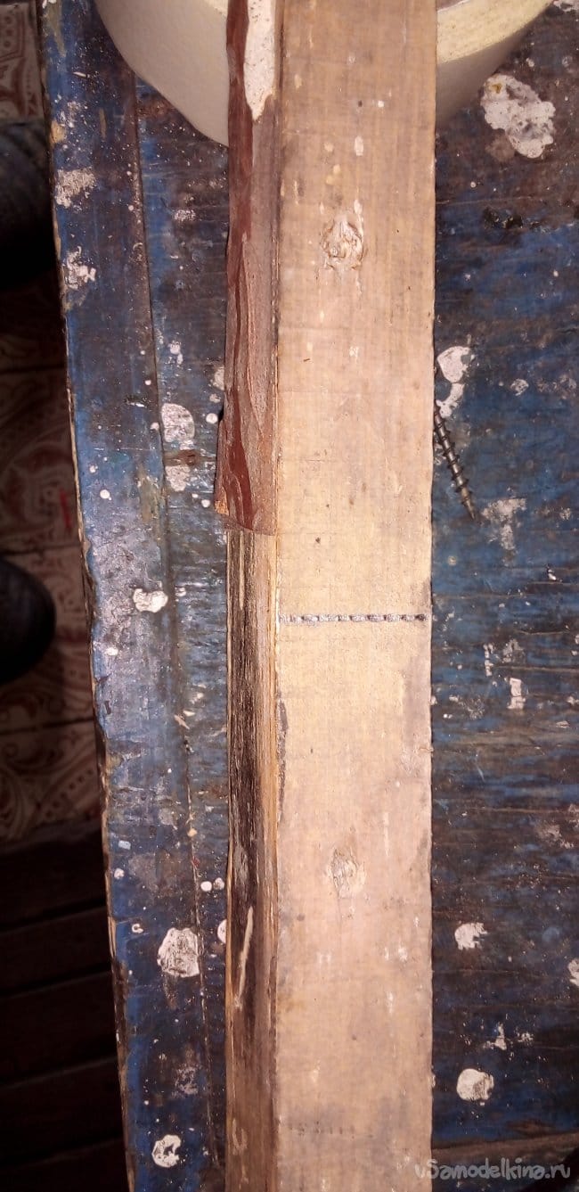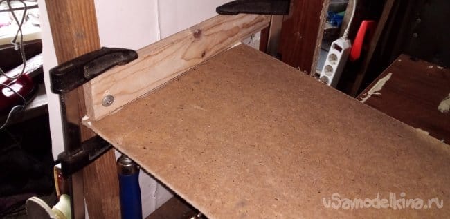 Также сделал полку наполовину - для этого сверлимся в стене прилепляем брусок к бруску рейку к рейки мдф к мдфу, рейку к рейке, к рейке штакетину штакетину к низу.