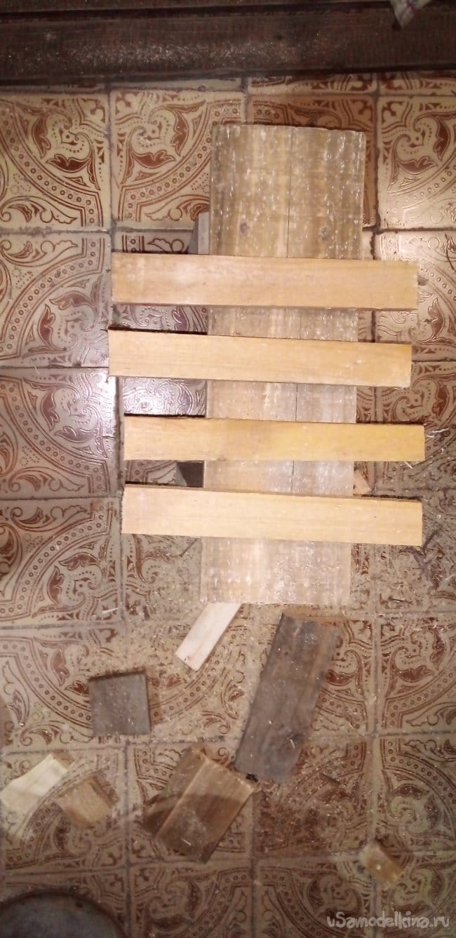 Так как внутри тоже что-то будет, то нужно сделать дно. Для этого я использую всё плоские и тонкие материалы. Раскладывать и прибиваем и прикручиваем.