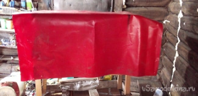 Теперь в своих запасах я откопал кусок тента, который прикручиваем за заднею крышку.