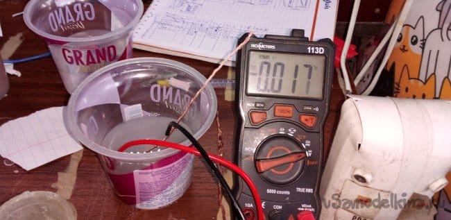 Электролитов будет четыре. Первый соляной раствор, второй раствор соды, третий уксусная кислота, четвёртый вода. И пятый вдогонку нечего. Ну начнём ЭКСПЕРИМЕНТ скрутка алюминия с медью, в солёной воде 0,05мВ