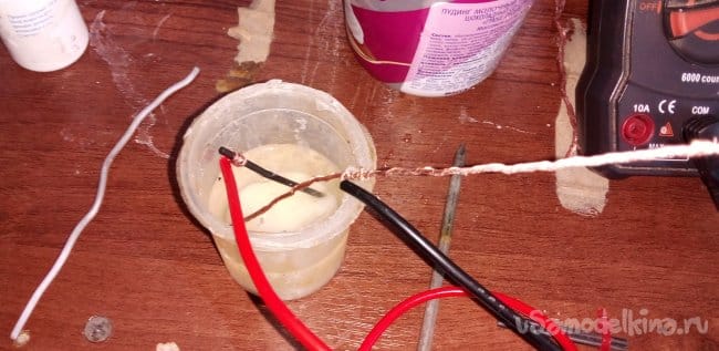 ЭКСПЕРИМЕНТ 2 скрутка алюминия с медью, но уже с промежуточным слоем из бумаги, соль в воде 0.54В