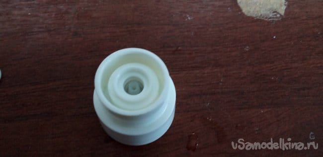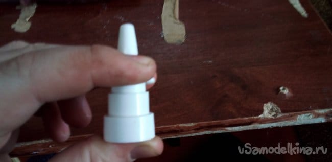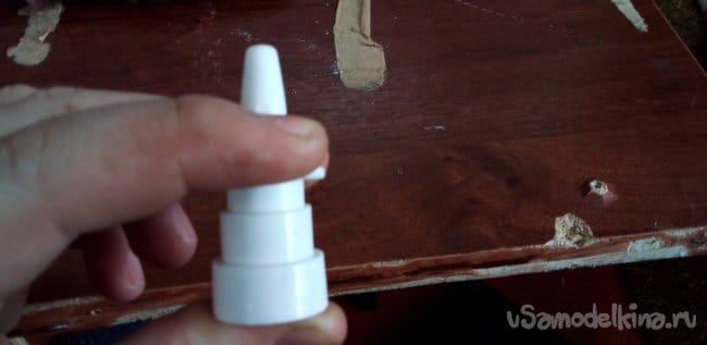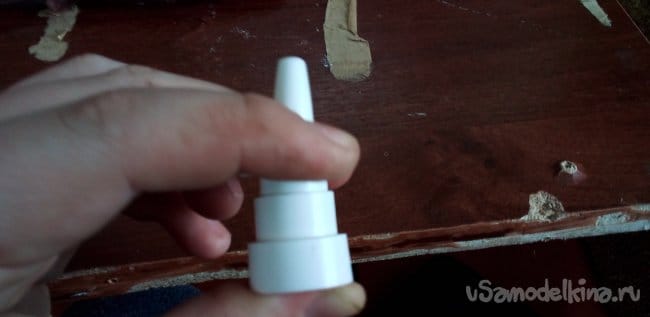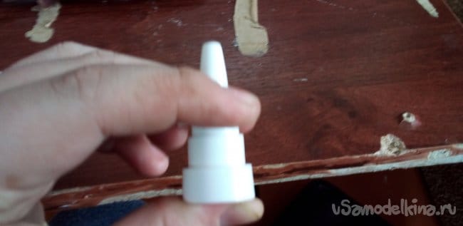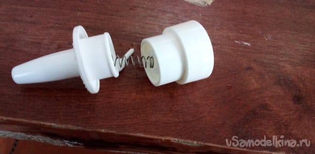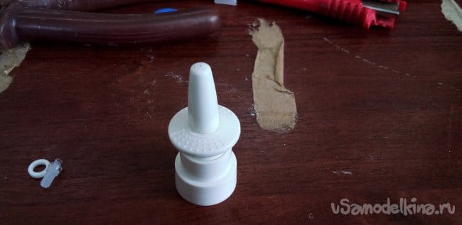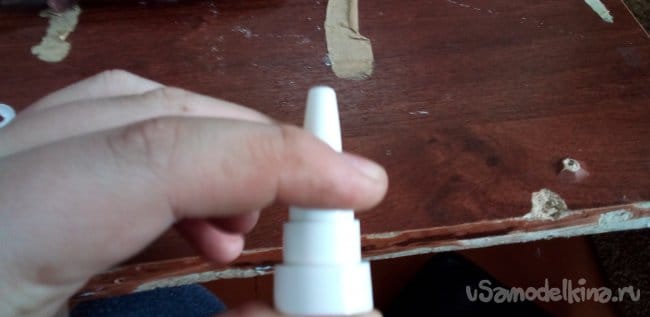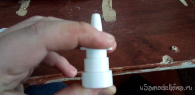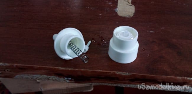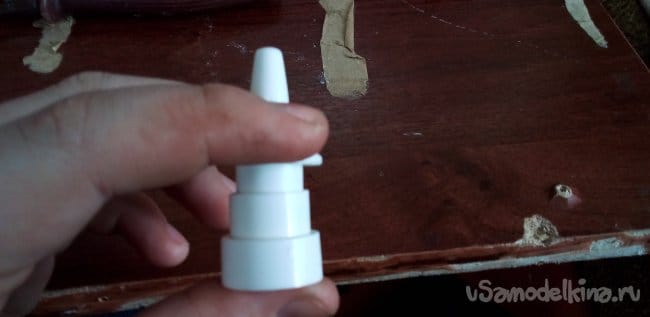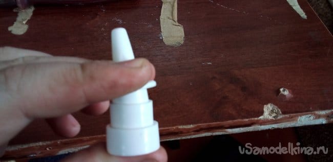 Теперь нужна пружина из того же спрея, вставляем в деталь, которая суётся в нос.