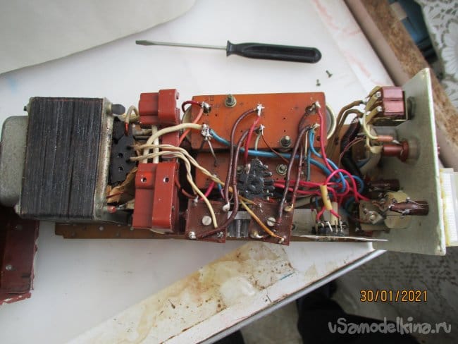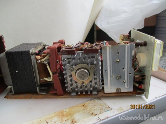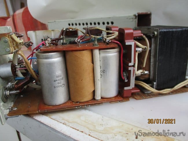 1. 70 витков проводом ПЭЛ 1.0, с таким расчётом, чтобы после выпрямления диодами типа КД202 (с любой буквой, мостик, на радиаторах), на холостом ходу не превышало 25 В, т.е. рабочего напряжения применённых электролитических конденсаторов, которые тогда имели куда большие размеры, при той же ёмкости и напряжении, по сравнении с современными.