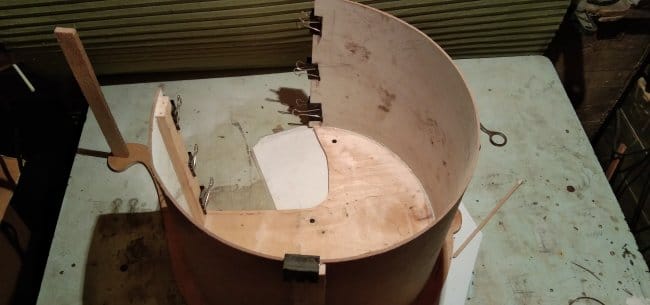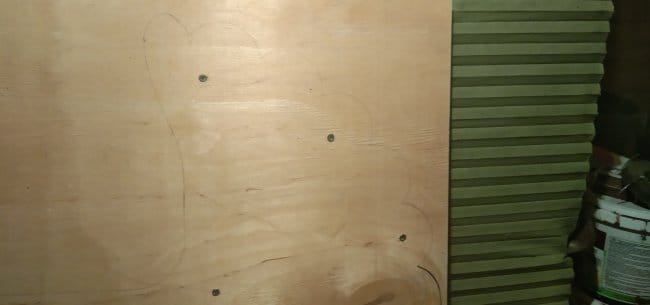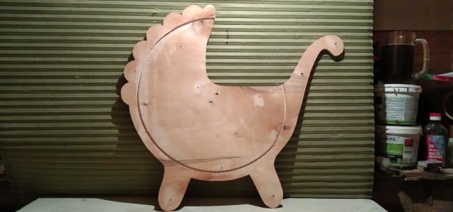 Фанеру использовал толщиной 4 мм. Отрезав от листа два куска одинакового размера, скрепил их между собой саморезами. Делалось это для того, чтобы обе боковые стороны были полностью идентичны друг другу. Выпиливал заготовки электролобзиком.