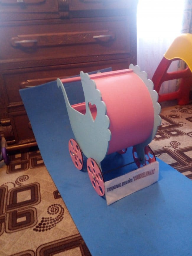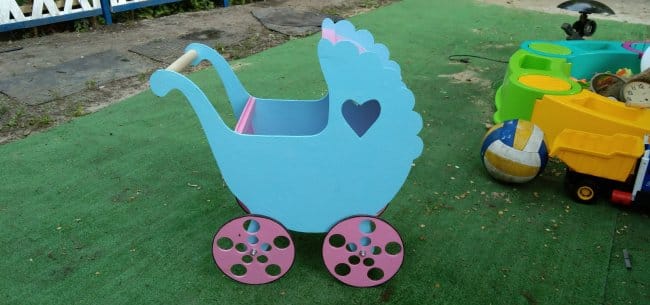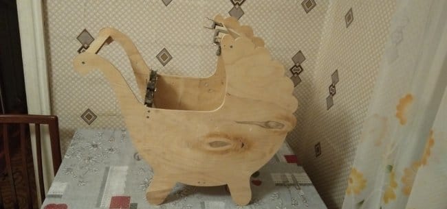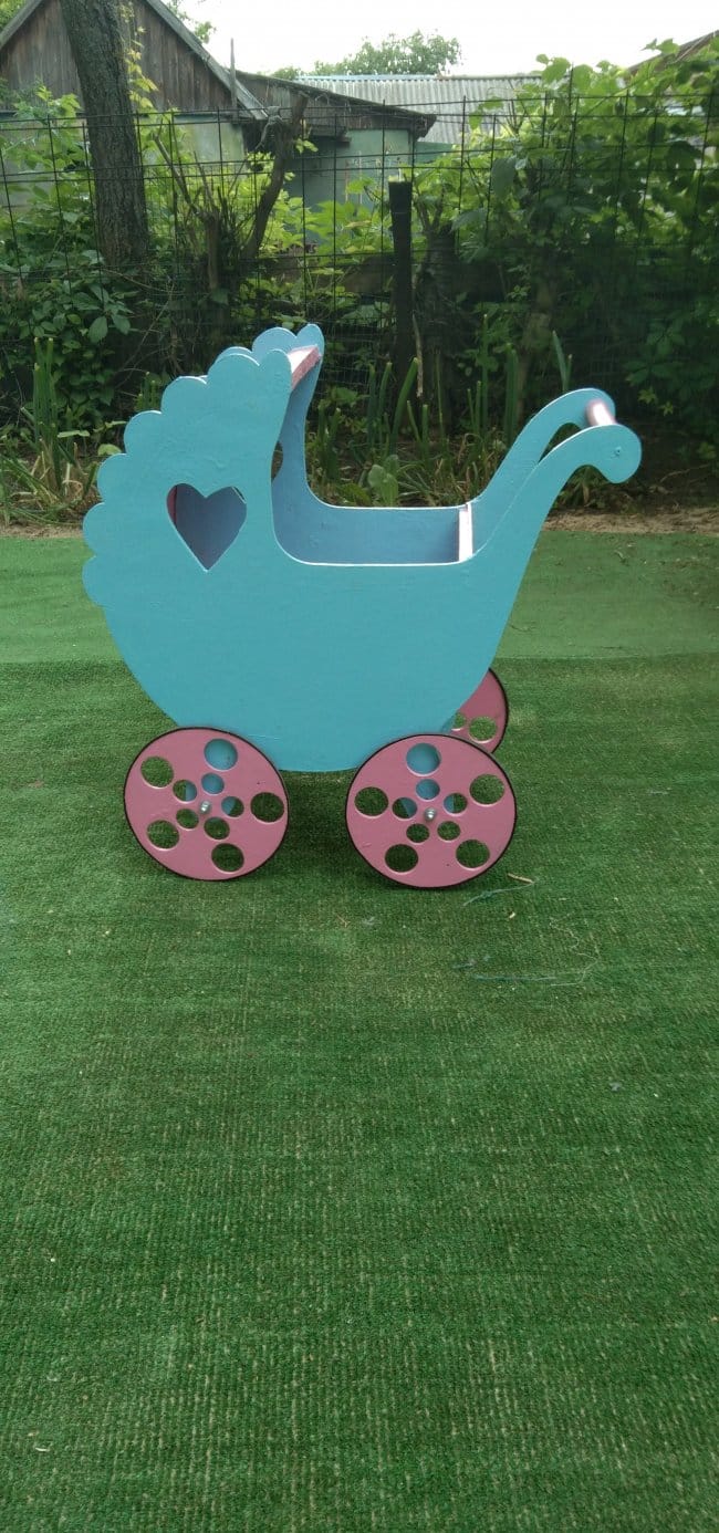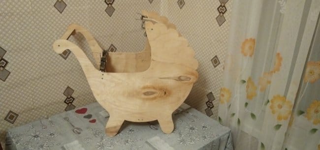 После длительного перерыва продолжаю выкладывать серию своих самых разнообразных изделий. На этот раз хочу представить вашему вниманию детскую коляску, изготовленную из фанеры. Делал я ее ко дню рождения ребенка, для фотосессии.