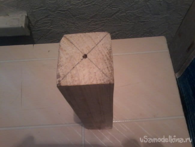 Шаг-2. По торцам бруска размечаю центр, и накалываю шилом.
