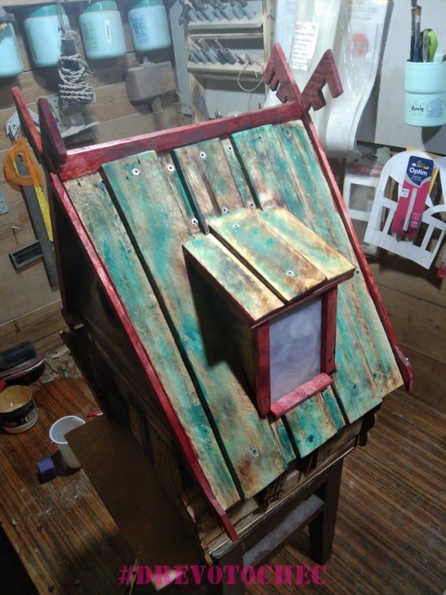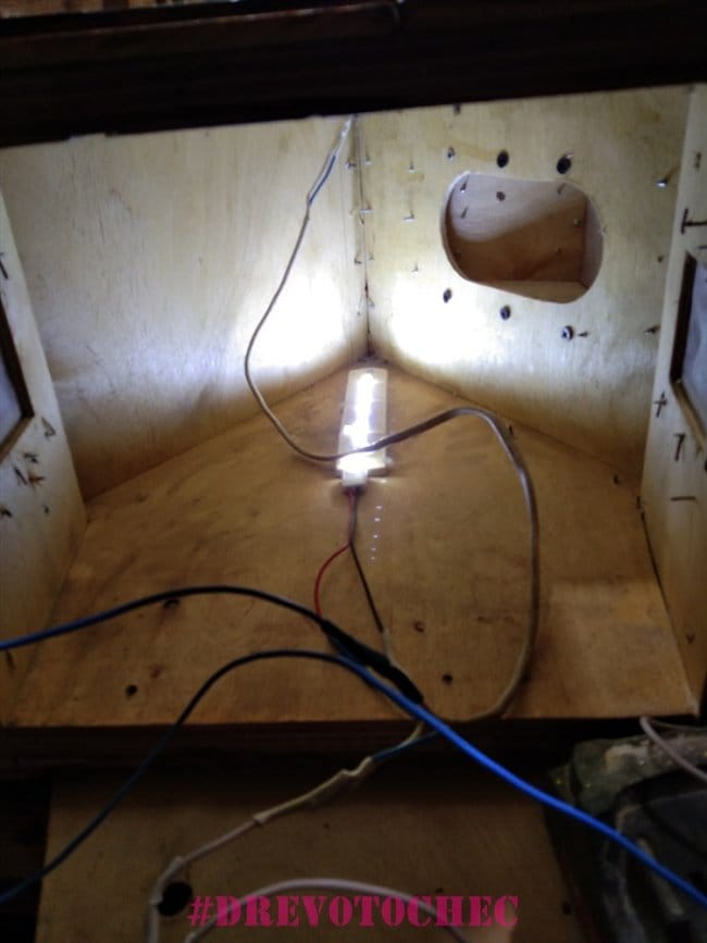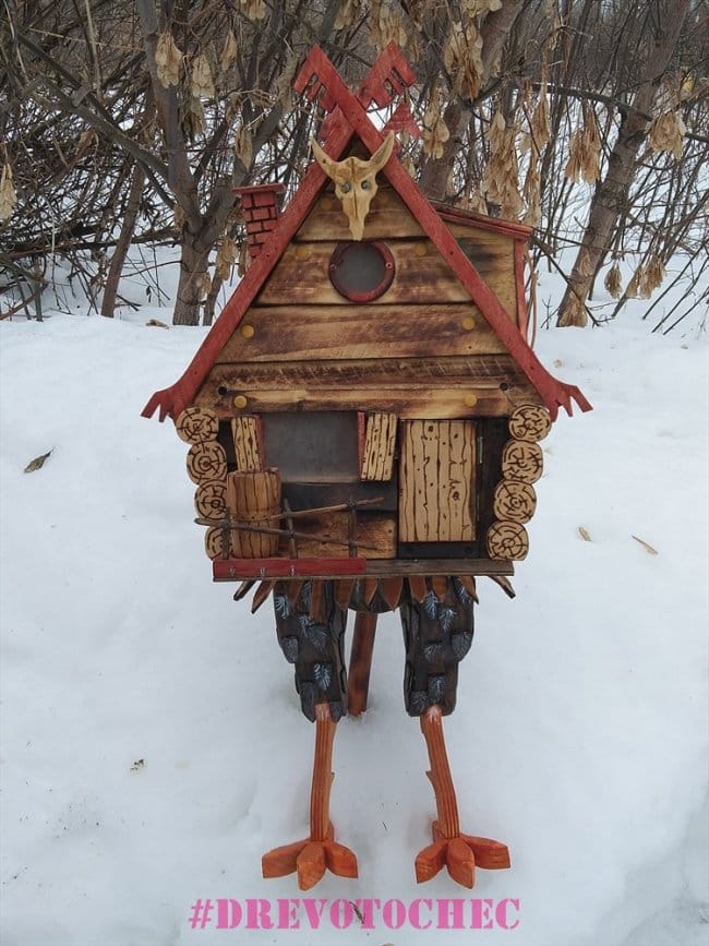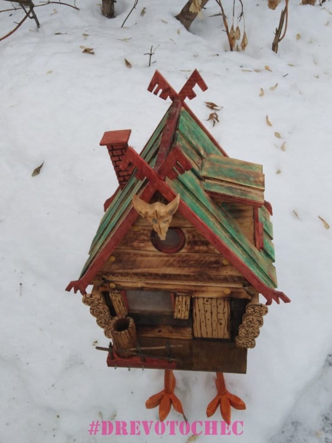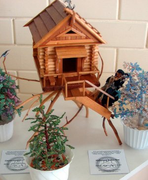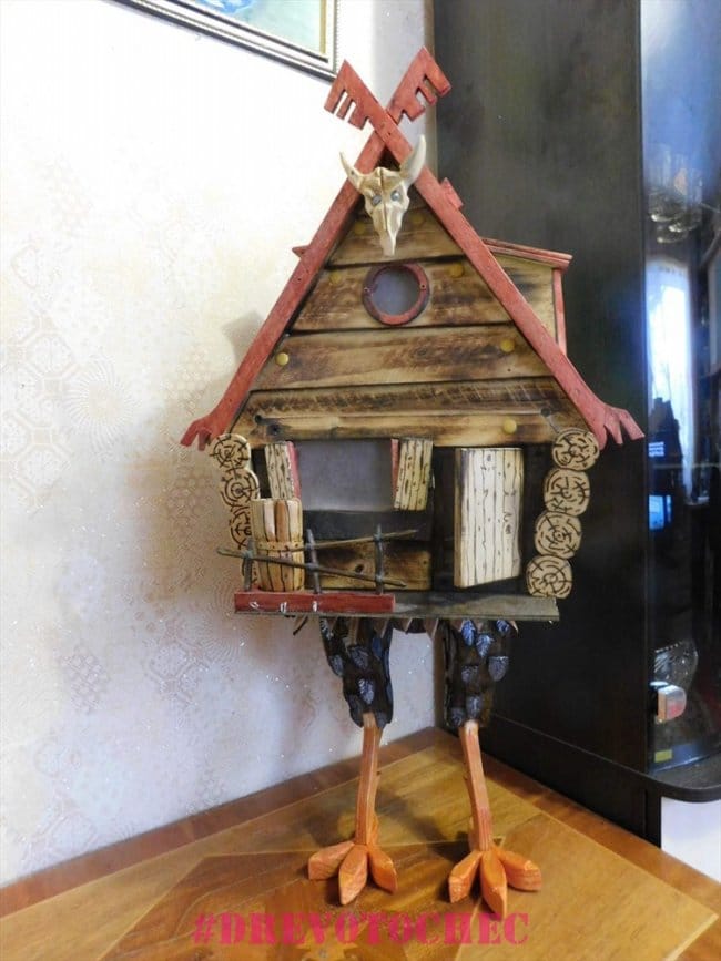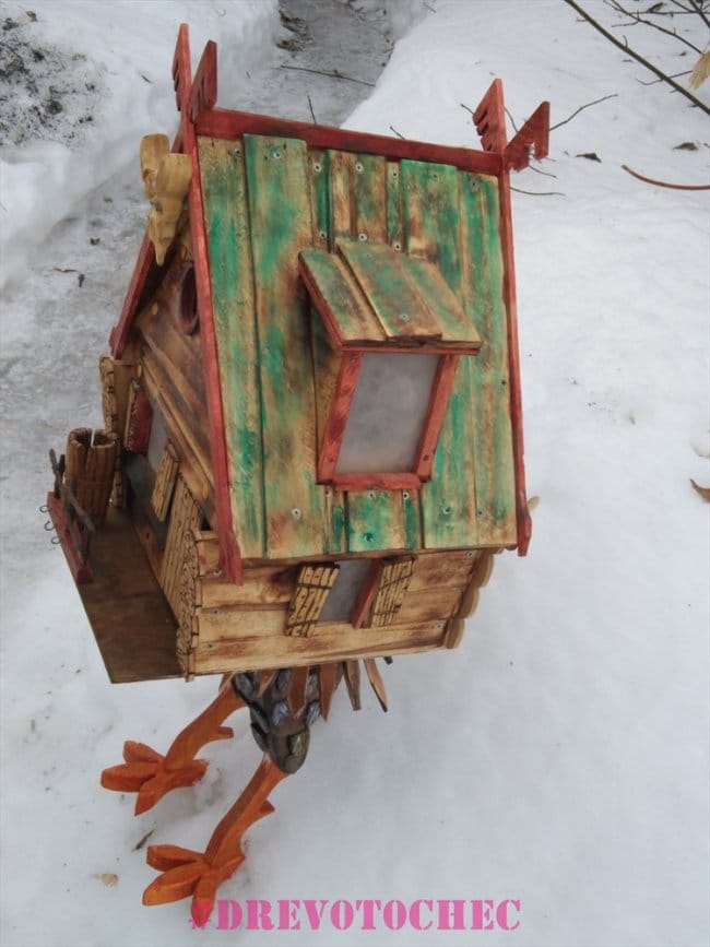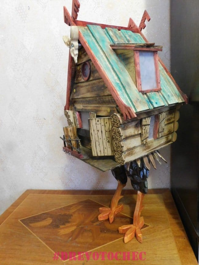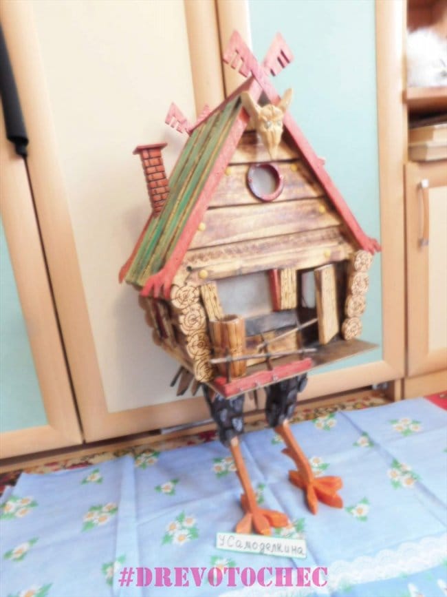 Ну вот и все. Избушка готова. Времени что на изготовление, что на описание, было потрачено не мало, но оно того стоило. В целом результат меня порадовал, матери тоже понравилось. Но если вы будете повторять и делать нечто подобное, то постарайтесь обойтись без опорной шпильки. Лучше в ножках делать отверстия, вклеить туда крыльчатую гайке и вворачивать шпильки. Так будет намного удобнее и красивее!
