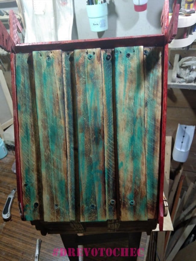 На выступающей части площадки устанавливаю площадку с заборчиком и местом для хранения ступы. Приклеиваю ее и с нижней части укрепляю саморезами. Все покрываю лаком. После высыхания устанавливаю на изделие.