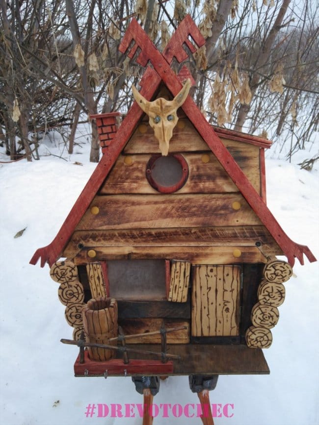 Так как в моем понимании избушка бабы Яги это несколько пошарпанное и неухоженное здание, то ставни на окнах я специально закрепил несколько криво. Так колоритнее выглядит строение. Для устрашения был вырезан череп быка.