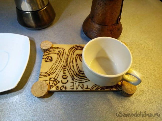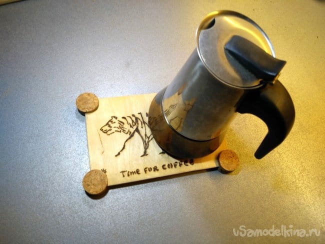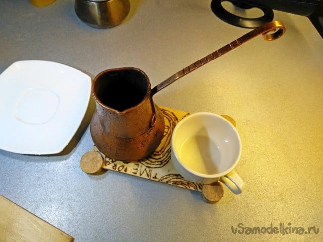 Бывает такое что не знаешь что подарить на праздник дорогому тебе человеку. Вот и я с сыном, подумали о том что подарить нашей любимой бабушке. В связи с тем что она очень любит пить крепкий кофе по утрам, мы задумались смастерить ей подставку под кофейную турку и чашку. Она же подойдет и в качестве своеобразной бирдекели, для любителей пива.