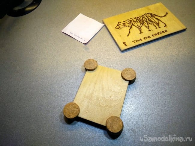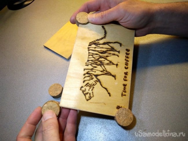 Если у вас не найдутся пробки из под вина, можно в качестве ножек использовать самоклеящейся "отбойники" - они продаются в любом магазине мебельной фурнитуры.
