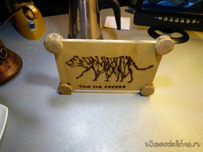 На этом наша подставка готова к эксплуатации. Я считаю что её не нужно ничем покрывать. Ну а если она будет нести чисто декоративную функцию то тогда её можно покрыть лаком или другим защитным покрытием.
