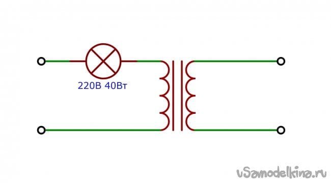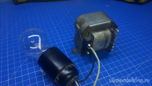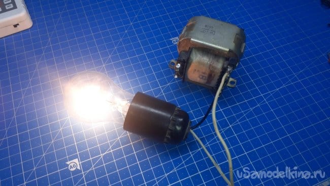 А если ваша лампочка будет светиться то значит вы сделали что-то не правильно. И эту обмотку категорически нельзя подключать в сеть 220В, а если вы это сделаете то я гарантирую что будет которое замыкание.