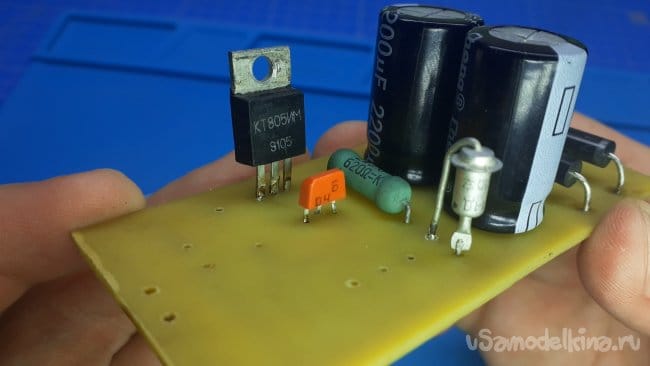 Ток у таких стабилитронов невелик поэтому нам потребуется его усилить при помощи транзисторов. Я использовал отечественные детали а именно КТ315 и КТ805.