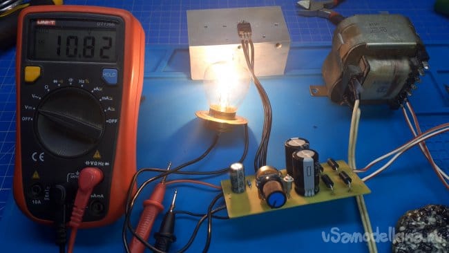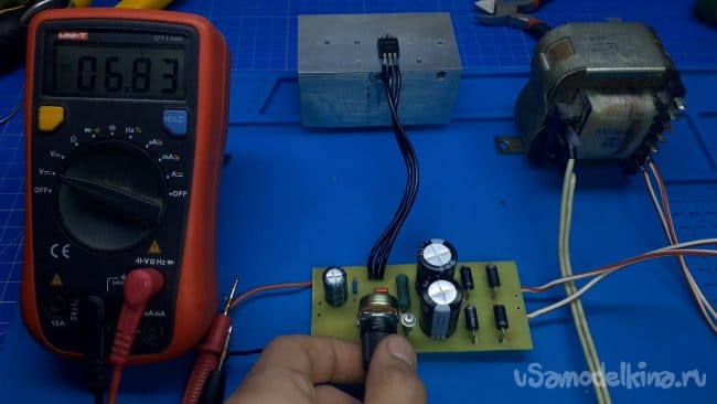 Напряжение регулируется от 0В до 12В без нагрузки.
