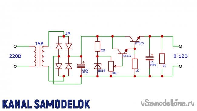 Всех приветствую, сегодня я покажу вам простую схему регулируемого блока питания, её сможет собрать даже начинающий радиолюбитель.