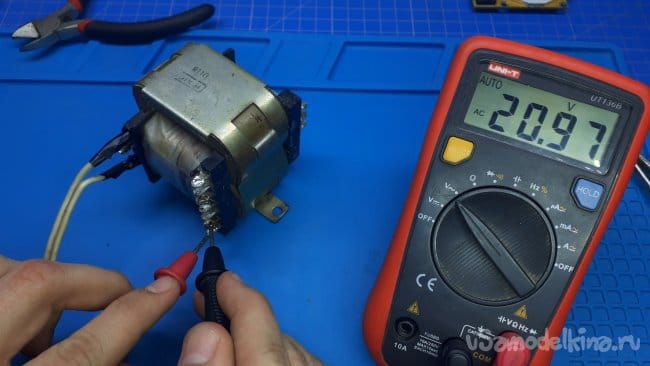 2.Если у вас есть трансформатор но на нем ничего не пишет и вы не знаете что куда подключать то можно взять мультиметра и его нужно будет включить в режим измерения сопротивления. Каждую обмотку потребуется проверить и каждое значение желательно записать. Потом смотрим на бумажку и на цифры. Самая высокоомная обмотка скорее всего сетевая и её надо будет подключить в розетку.