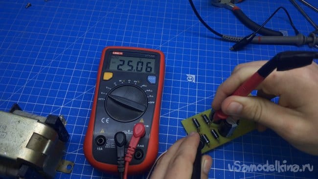 Напряжение у нас было 17.8В и если мы умножим его на 1.41 то получим напряжение до которого зарядиться конденсатор.