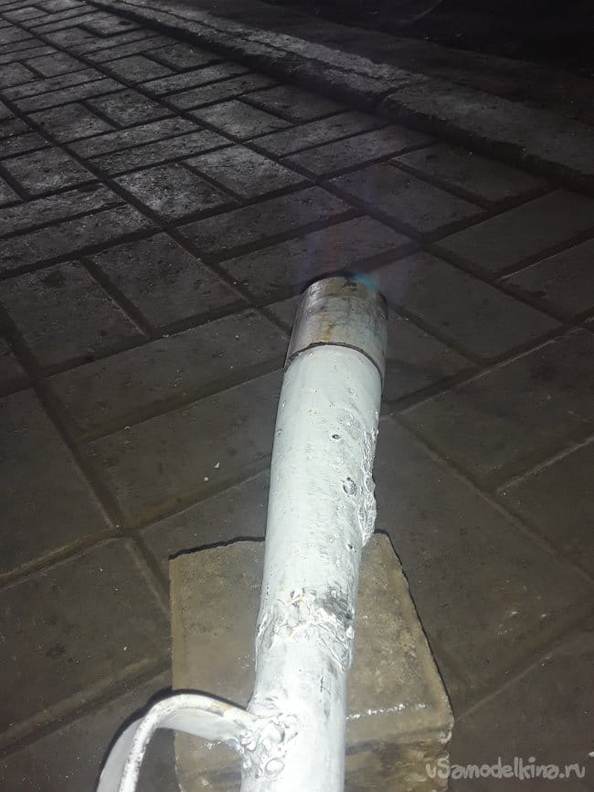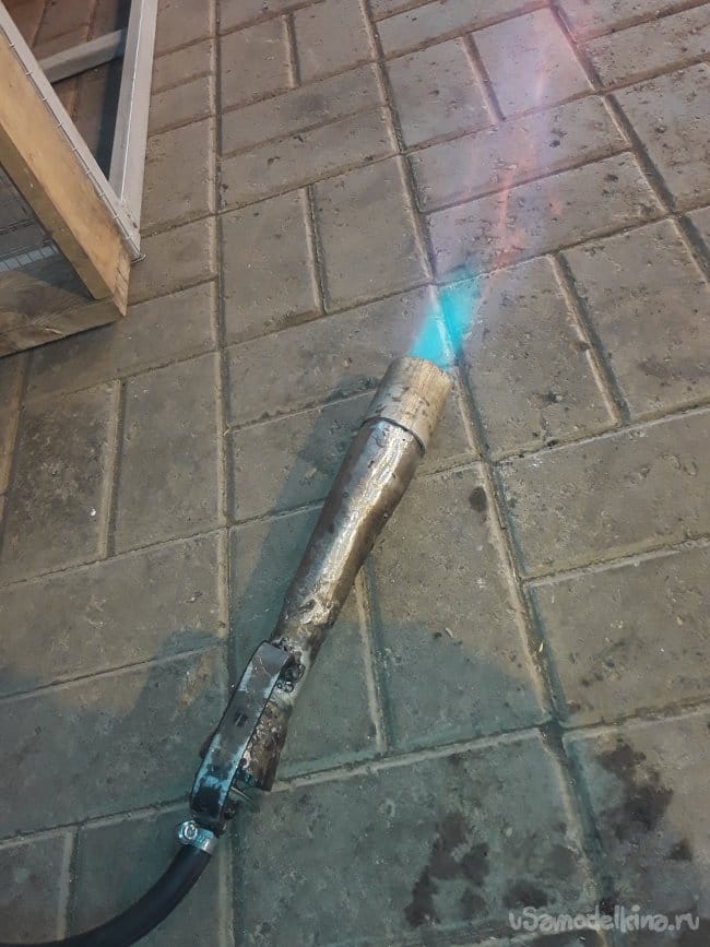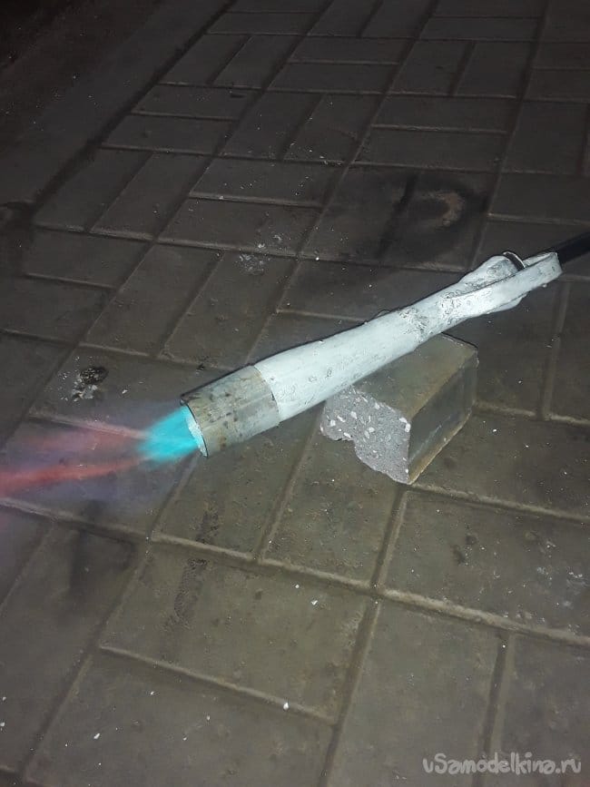 Вот и все горелка готова приступаю к тестированию. Во время тестирования горелка на минимум открытым воздухе и газе горит стабильно, но стоит только добавить газа или воздуха пламя срывает, и горелка тухнет. В таких случаях советуют делать на окончание сопла прицел или одевать трубку равную внешнему диаметру горелки, но эти два варианта мне никак не помогли. Потом я нашел в сети информацию о том что нужно приварить кусочек трубы 5мм длинной равной диаметру окончания сопла, но и это не помогло. Долго искал и нашел очень интересное видео о том что нужно делать чтобы пламя не срывало на видео мастер сделал шесть отверстий отступив от края сопла 4 мм диаметром 4 мм сверлом одел на сопло кусок трубы так, чтобы просверленные отверстия не закрывались этот способ он назвал кольцевой стабилизатор пламени. Я все повторил и был удивлен, что такая мелочь, а работает. Горелка стала стабильно работать, как на маленьком, так и на повышенном давлении воздуха и газа в общем на радостях спалил весь баллон газа чтобы убедиться что друг сможет работать с горелкой без проблем. Самое главное я сначала просверлил отверстие 2 мм и газ начал просто гореть в самой горелке после чего я просверлил отверстие 4 мм и все заработало как надо. Ну вот и все друзья на сегодня я все что мог, рассказал теперь пойду делать горн как всегда из того что было обязательно поделюсь с вами.