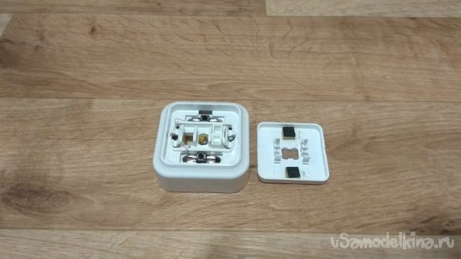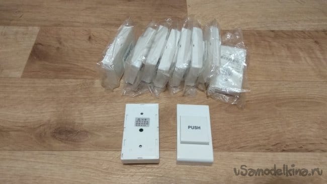 Одной из проблем оказалось выбор кнопок. Хотелось красивые. Ничего подходящего не было. Проект остановился. Пробовал покупать одноклавишные выключатели и переделывать их, устанавливая внутрь кнопки. Не понравилось. Слишком отчужденно смотрелся такой выключатель на стене.