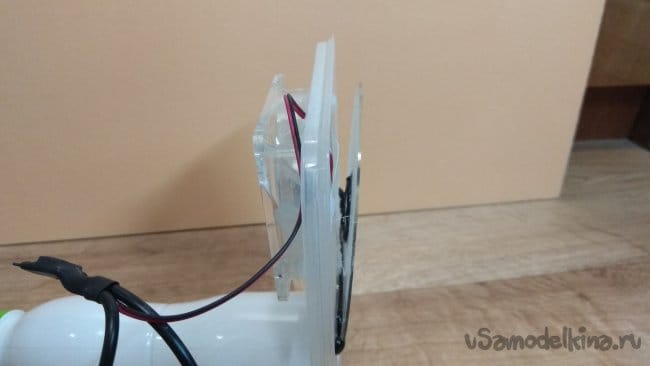 Почему вентилятор у меня приклеен прозрачным клеем, а пластик черным? Однажды, когда я мыл увлажнитель, заметил, что пластик практически отклеился. Не знаю, почему это произошло, возможно, клей был некачественный или крышка не обезжиренная. У меня в наличии был черный термоклей, решил попробовать приклеить им. Пока держится.