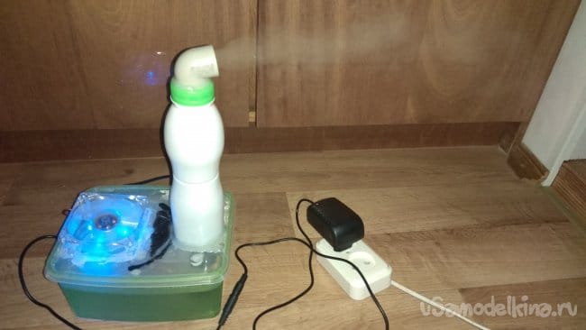Что по цене: на Aliexpress ультразвуковой генератор тумана можно купить за 5 долларов, блок питания к нему и вентилятор по 3 доллара, DC-DC преобразователь 5 шт. за 3 доллара. Если к этому прибавить уголок и емкость, то в сумме выйдет около 15 долларов.