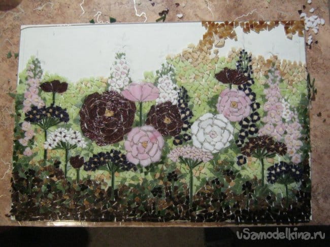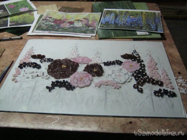 Фото 3. Стеклянная мозаика в работе. Сборка основных элементов рисунка.