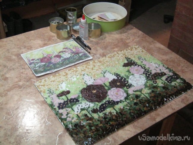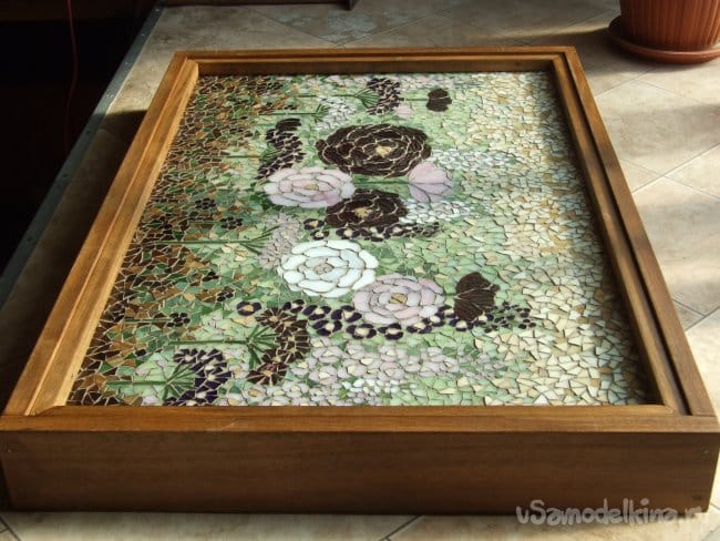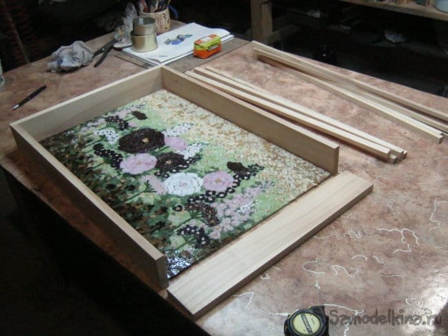 Основа – из старого оконного стекла вырезали нужных размеров кусок, отмыли, притупили острые кромки.