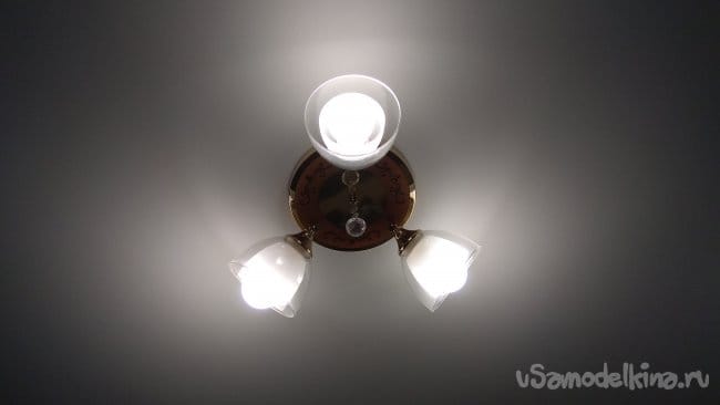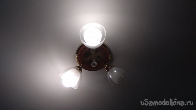 Люстра может управляться как с помощью пульта, так и посредством штатного выключателя.