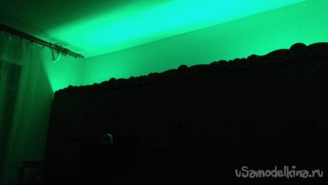 - RGB лента на шкафчиках с дистанционным инфракрасным управлением;