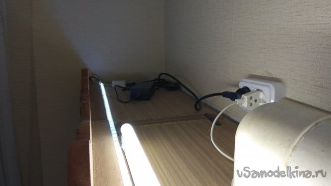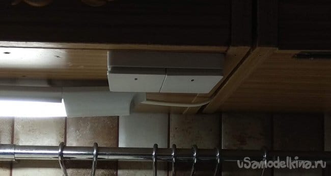 Последним рассмотрим лампу подсветки рабочей зоны и лампу отраженного рассеянного света на шкафчиках. Я объединил их вместе потому, что они управляются от двух сдвоенных пультов. Мне так удобнее и практичнее.