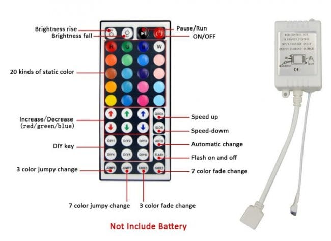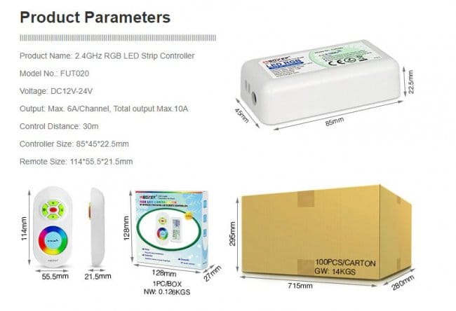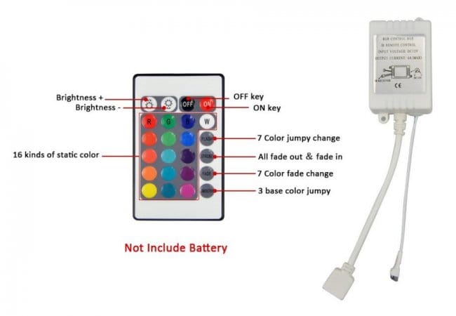 Я покупал контроллер много лет назад, тогда особо выбора не было, поэтому выбрал недорогой с маленьким пультом, есть варианты с расширенными пультами. Они отличаются более широкими возможностями управления, включая раздельное управление каждым цветом. Контроллер положил рядом с блоком питания и лентой.
