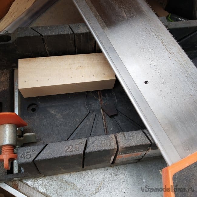 Распиловку я проводил вручную на стусле. Никакой точности, но хотя-бы угол держится.