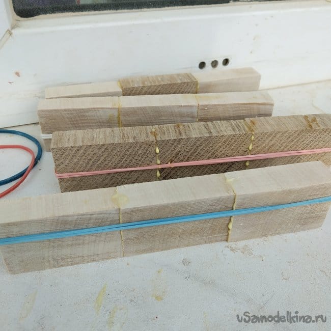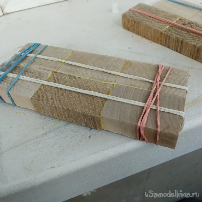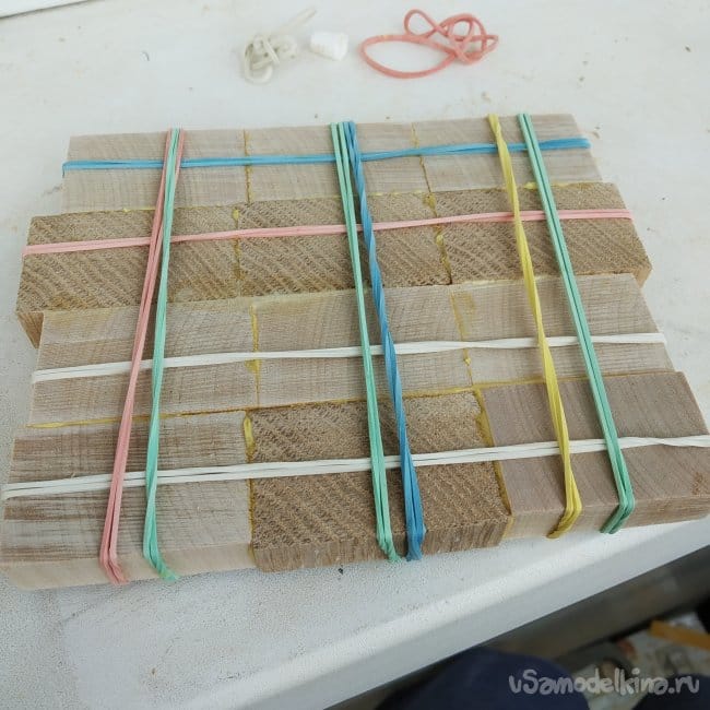 Далее я склеивал уже эти полосы, когда клей схватился.