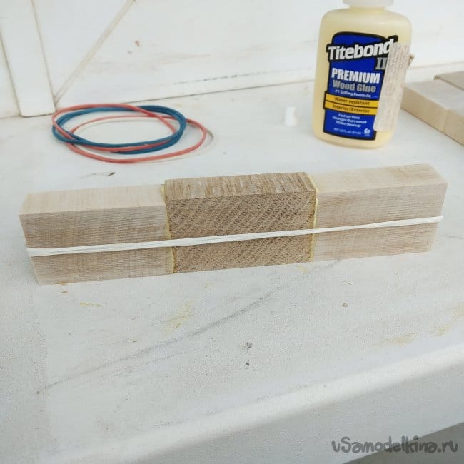 Вот такая наборка получается. Бруски дуба оказались больше березовых, что прилично мешало при склейке.