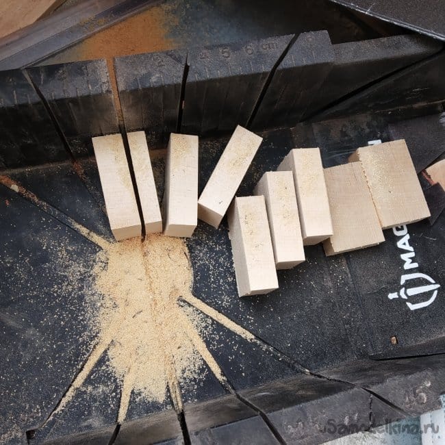 А история создания началась с того, что я закупил дешманских брусков вышеперечисленных пород в небезызвестном хобби-магазине «Леонардо». Покупать такие заготовки для наборок удобнее, чем заказывать доски, так как рейсмус в квартире не поставить. Да и дешевле получается.