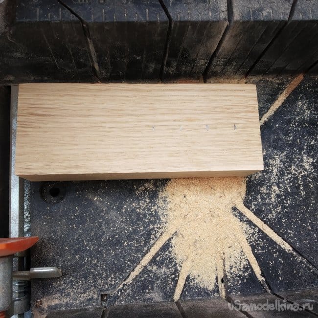 Брусок дуба я также прошлифовал, разметил и распилил.