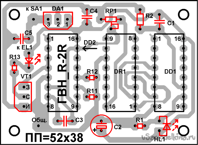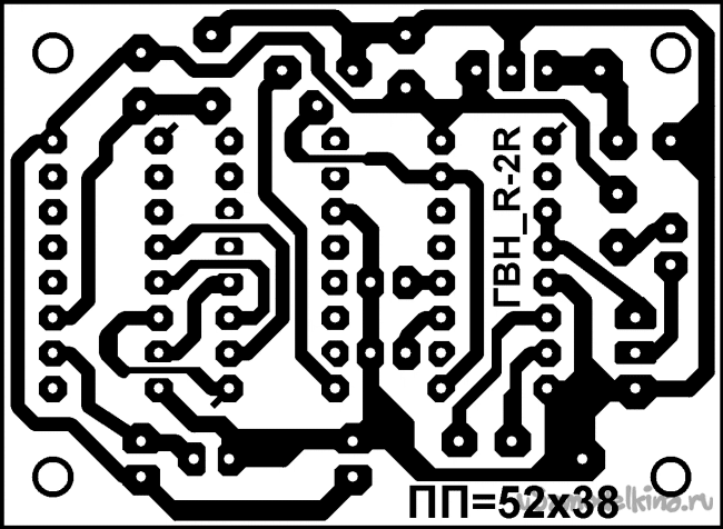 А ПП (печатная плата) ГВН приобретёт следующий вид (см. рисунки 8 и 9). R-2R матрица на рисунках 7 и 8 обозначена как DR1.
