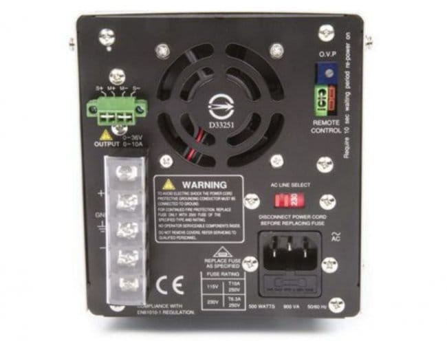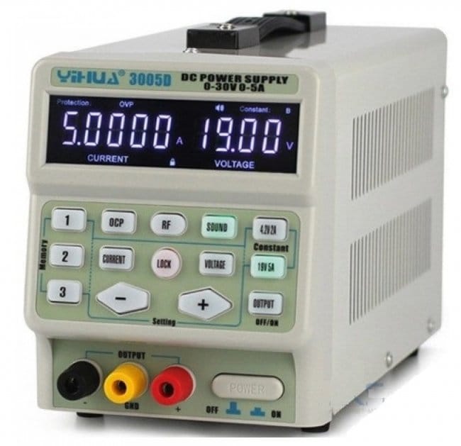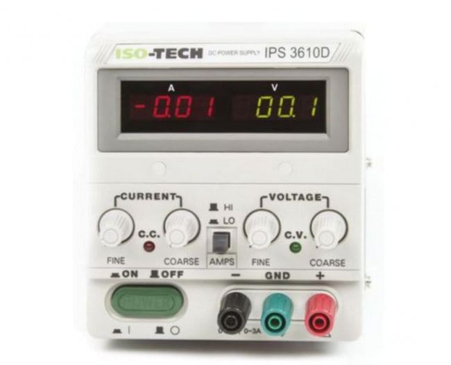 Первый блок питания, который купили для производства, был Iso-Tech IPS3610D. При всех своих достоинствах: грубая и плавная регулировка тока и напряжения, выходные 36В 10А (правда, такой ток можно было снять только с клеммника расположенного сзади, а с фронтальных разъемов только 3А) был один существенный недостаток - практически сразу потенциометры, отвечающие за регулировку тока и напряжения, начали барахлить. Выставить и поддерживать нужные значения тока и напряжения было сложно.