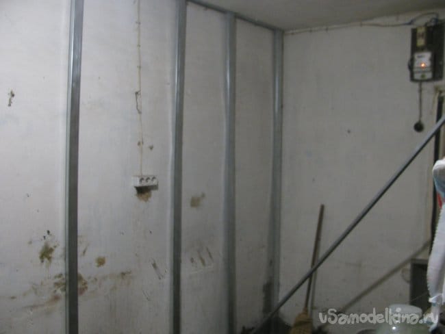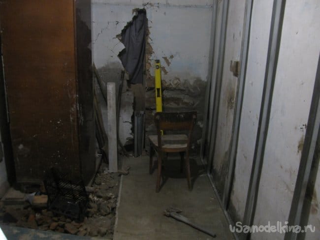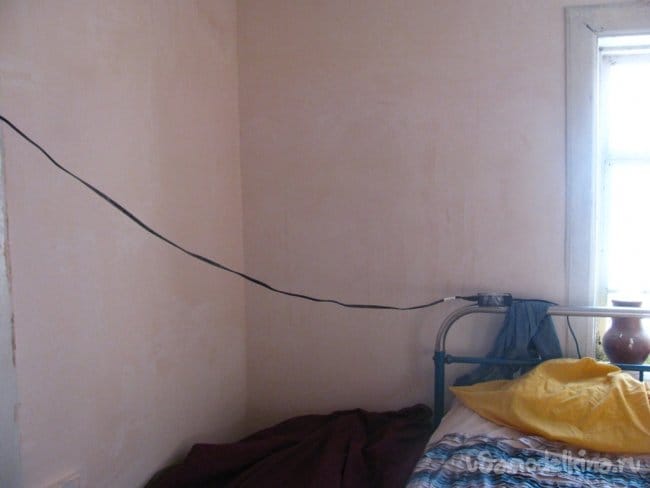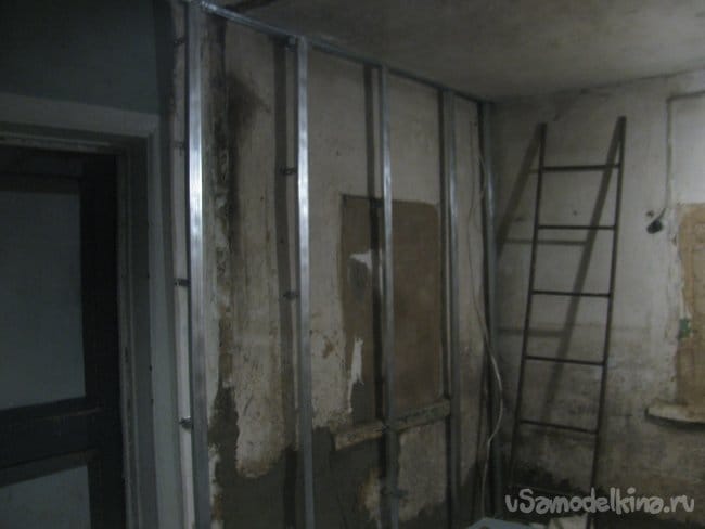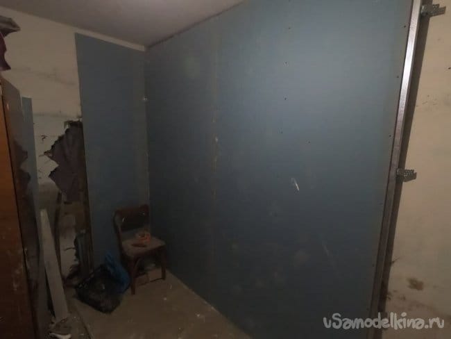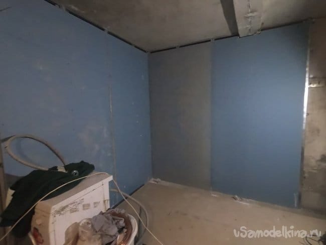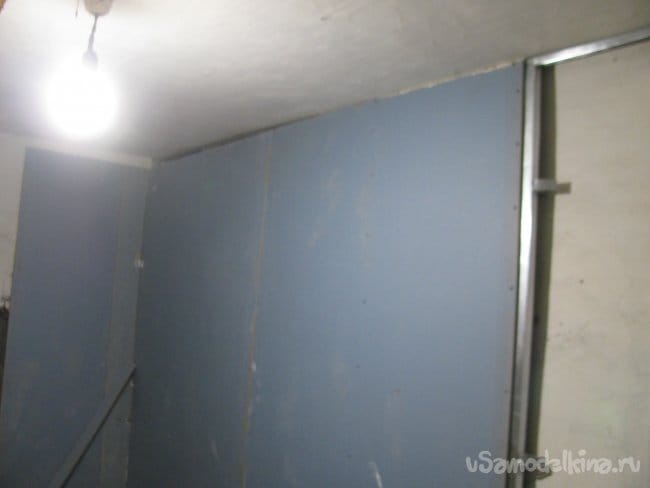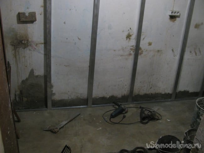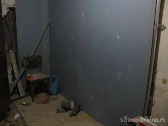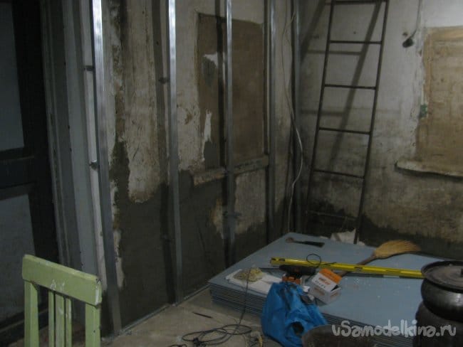 После стяжки можно обшивать стены, они у нас очень кривые, обычно в центре выпуклые, а вверху и снизу завалены внутрь.